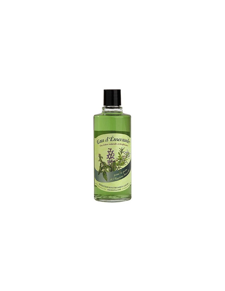 L’Eau d’Émeraude est une lotion pour la peau et l’hygiène buccale, à base de miel et de trois plantes, la sauge, le romarin et la menthe. Une fermentation alcoolique dans laquelle macèrent ces plantes permet d’obtenir par distillation un alcool à 50% vol. conservant leurs propriétés médicinales. « L’eau » prend sa couleur émeraude grâce à un procédé naturel et traditionnel transmis de génération en génération.